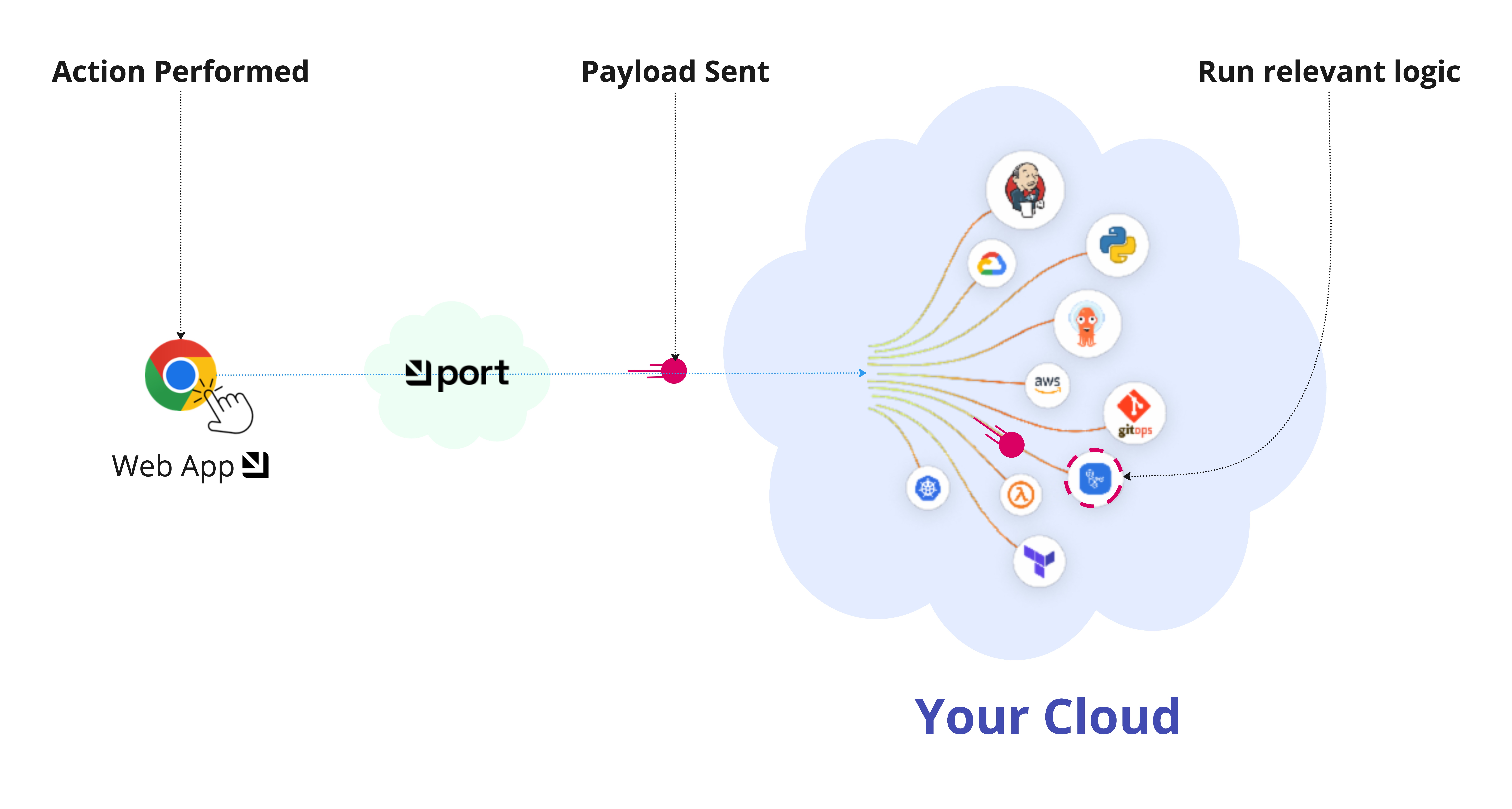 2. A pre-defined payload containing any desired metadata about the action and its inputs is sent to your infrastructure.