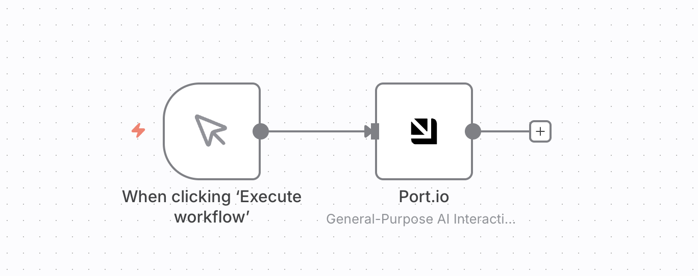 5. Connect the nodes — Drag from the + icon on the trigger node to the left side of the Port AI node to connect them.