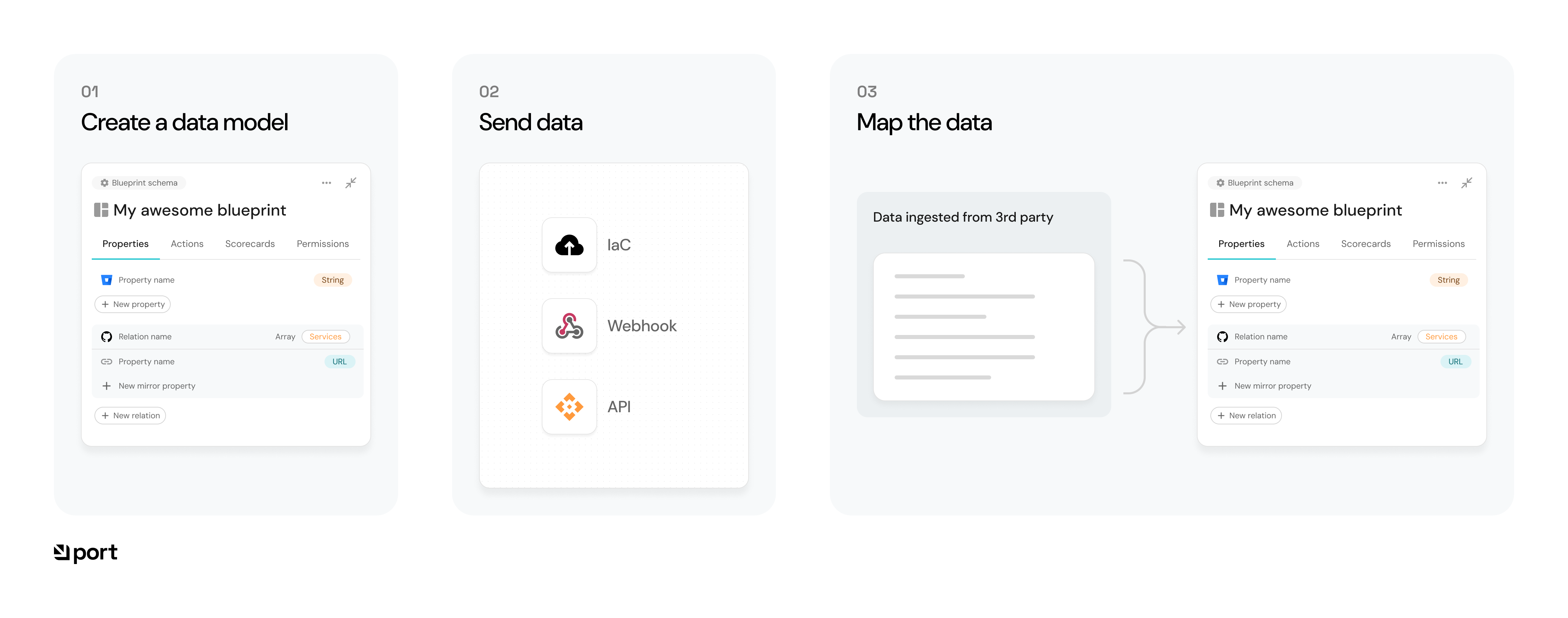 Generally, integrating a platform/tool with Port consists of 3 steps: