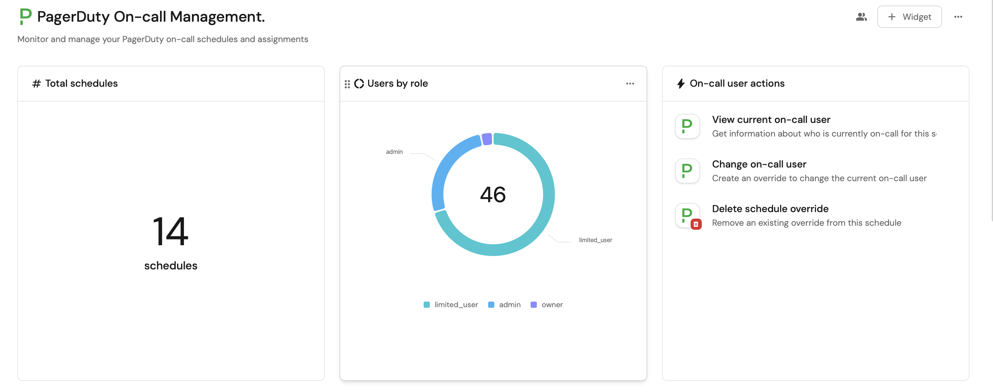 Monitor and manage your PagerDuty on-call schedules and assignmentsunder Description. -