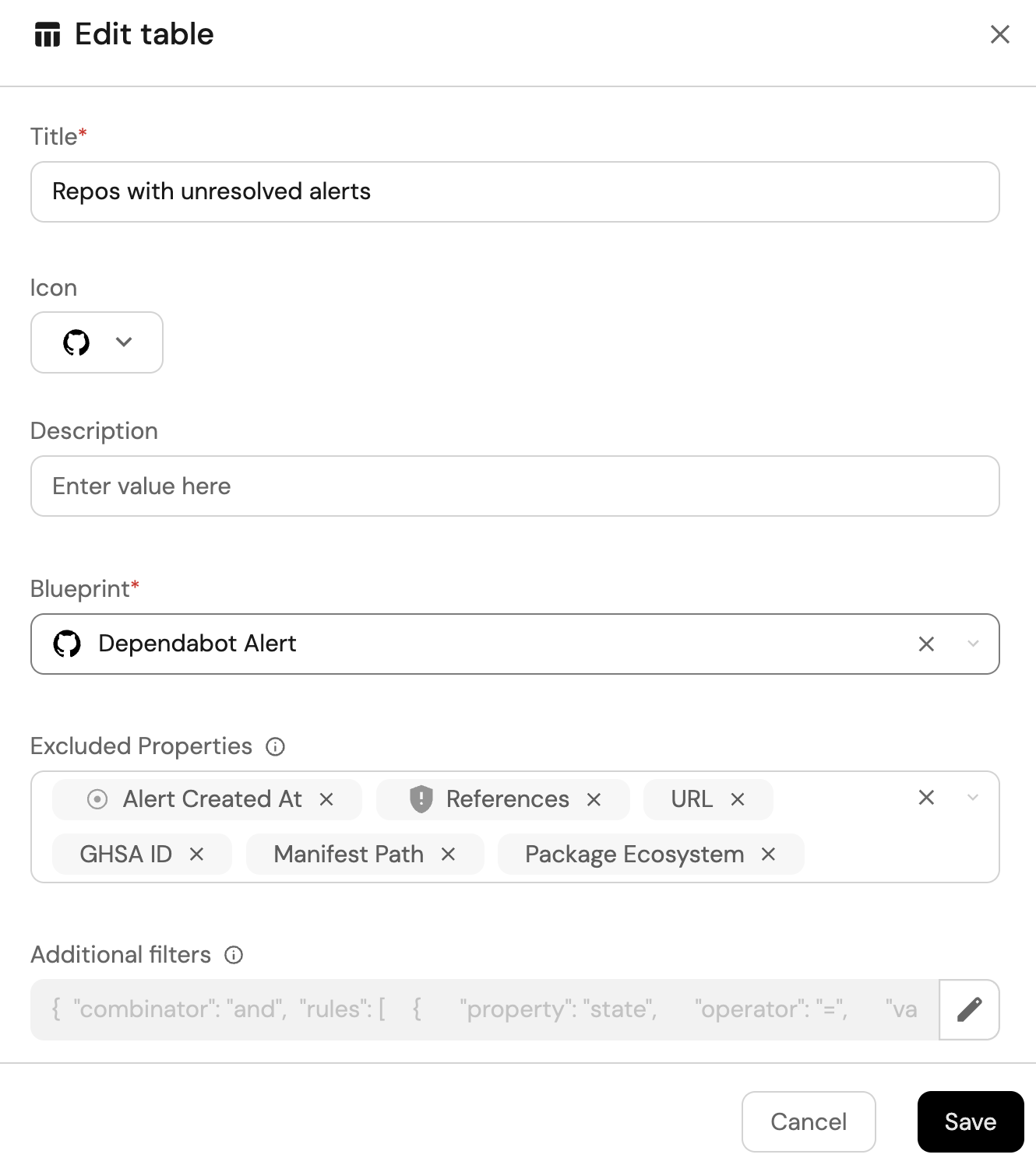 Count entitiesChart type and choose Dependabot Alert as the Blueprint. -