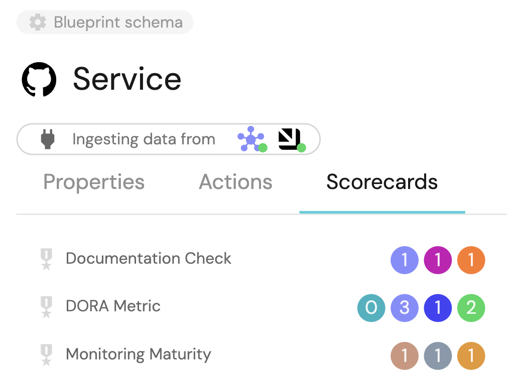 After configuring scorecards for the blueprint, each entity created from it will have a Scorecards tab in