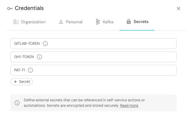 Port provides a secure way to store sensitive data, such as tokens, passwords, and other secrets used in different Port components.