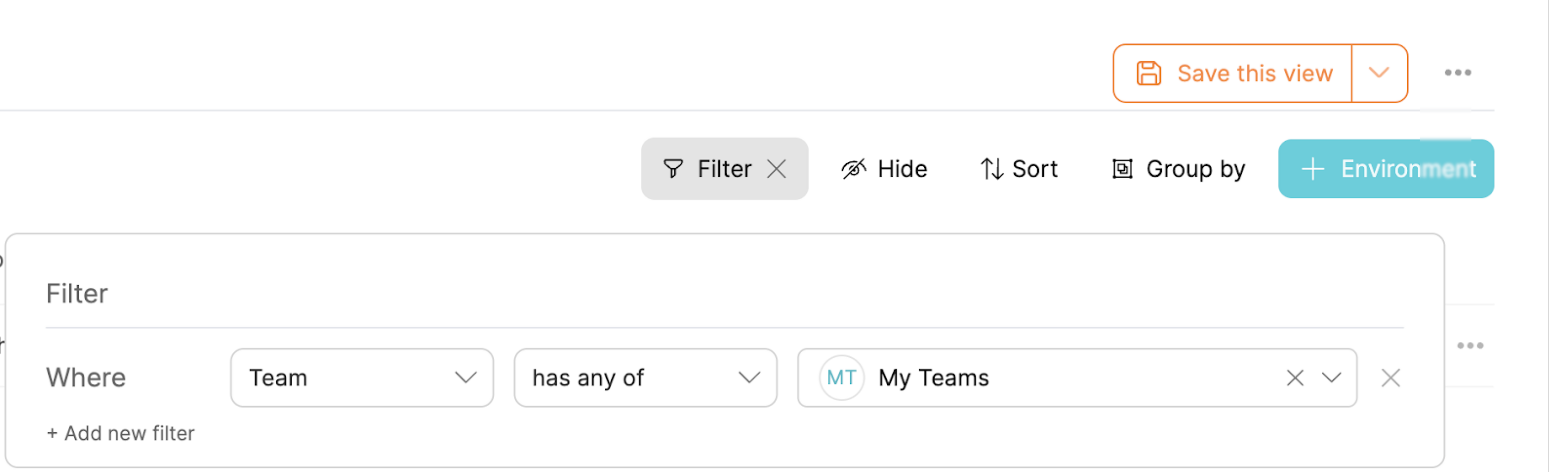 Once the team ownership is properly configured we can create dynamic filtering, and show users personalized views such as "my open Pull Requests" or "my teamβs services". We can also lock views to prevent a user from seeing services that are outside of his/her teamβs scope.
